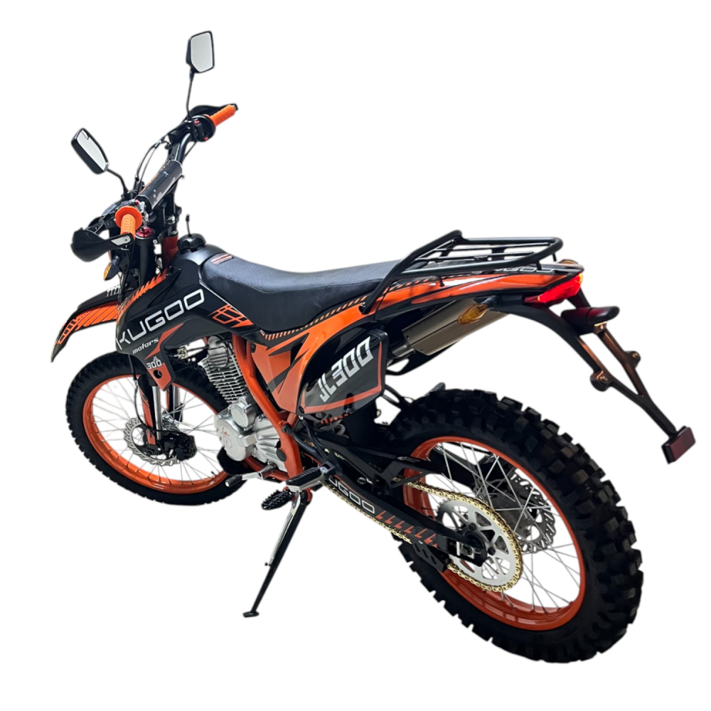 Если вы ищете надёжный бензиновый мотоцикл для динамичных поездок по пересечённой местности, Kugoo JL-300 — это выбор, который сочетает в себе высокую проходимость, простой и мощный двигатель, а также комфортную управляемость в любых условиях. Эта модель идеально подойдёт как для начинающих, так и для опытных райдеров, желающих испытать себя на настоящем эндуро.