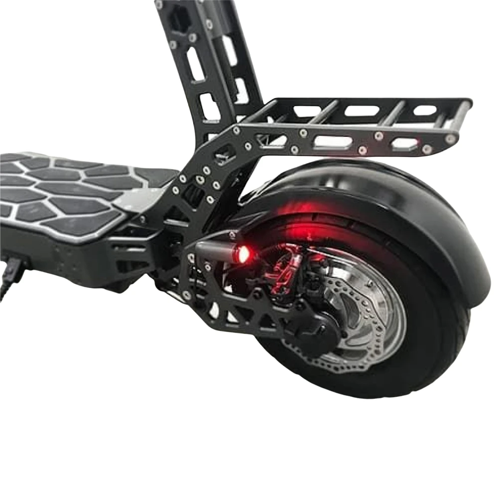 Модель весом 35 кг имеет максимальную грузоподъемность 120 кг. Представлена легкой алюминиевой конструкцией, что позволяет легко передвигаться по городским тротуарам, парковым зонам и площадям. При мощности двигателя 2400 Вт быстро развивает скорость до 60 км/час. Техника имеет современную съемную литиевую батарею, что гарантирует достижение максимального пробега до 100 км (на одной подзарядке). Для безопасности движения электросамокат оснащен дисковой и электронной тормозной системой. Райдеры по достоинству оценят LED подсветку и LCD дисплей модели. Транспортное средство имеет пневматические колеса размером 11 дюймов, что позволит быстро и плавно передвигаться. Модель подарит массу положительных эмоций и впечатлений пользователю.