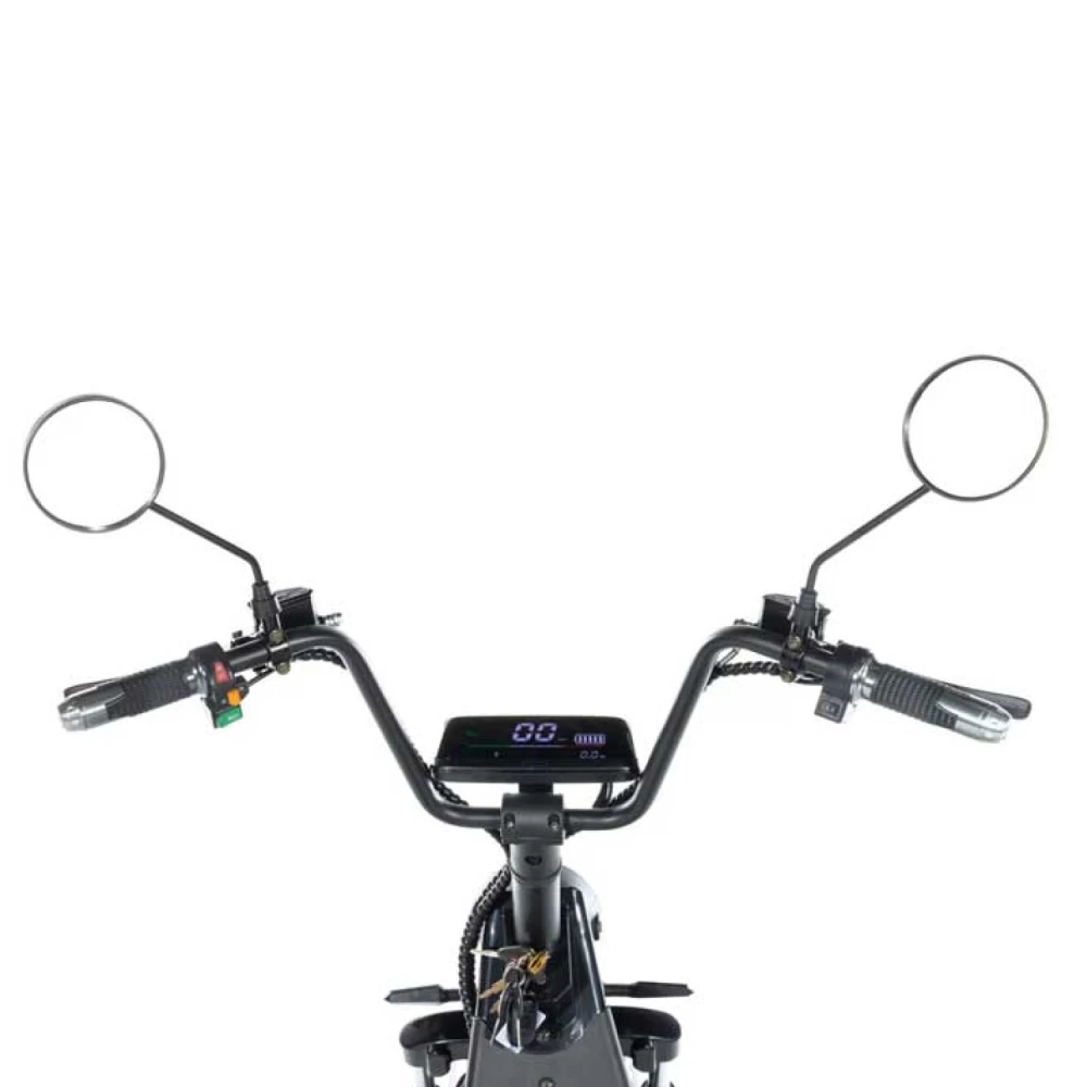 Электробайк – безопасная в эксплуатации техника. Наличие жк-монитора позволяет отслеживать скоростные характеристики, заряд АКБ и другие параметры. Качественная тормозная и амортизационная система обещают своевременное торможение с остановкой, отсутствие дискомфорта при преодолении проблематичных участков. Несмотря на безопасность двухместного электробайка производитель настаивает на покупки дополнительных аксессуаров защиты для ездока. Надеемся, вам понравилась модель электробайка. Ждем ваших звонков!