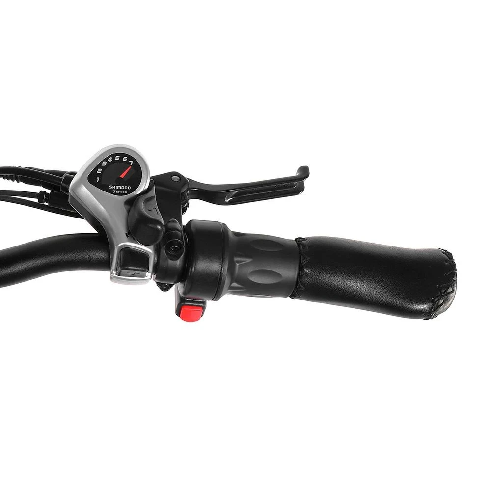 Литий-ионная АКБ 21 Ач (напряжением 48 В) расположена за подседельной трубой для экономии пространства и исключения контакта с райдером. Батарея быстро заряжается за 10 часов и рассчитана на преодоление 115 км пути на одном заряде. Передний амортизатор на подвеске идеально смягчает наезд на кочки и подойдет для катания по песку. Дисковые гидравлические тормоза обеспечивают плавное и эффективное торможение на дороге. Сидение имеет анатомически правильную форму для комфортного катания, багажник рассчитан на перевозку небольших грузов. Ждем ваших телефонных звонков для заказа модели.