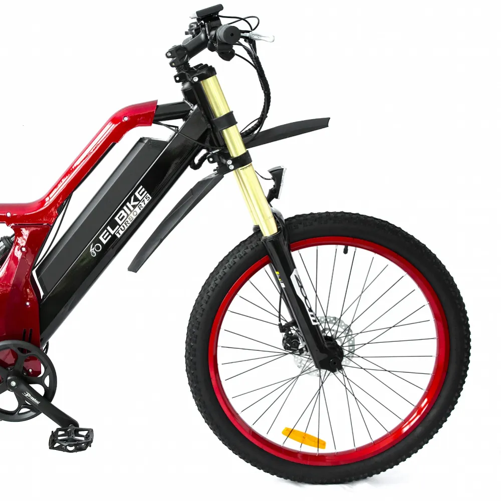 Представляем вашему вниманию электровелосипед Elbike TURBO R65 премиум класса. Значительный размер колёс в 26 дюймов, яркий красный цвет, мощность мотора 500 Вт. Электровелосипед буквально кричит о том, что готов ездить в экстремальных условиях.