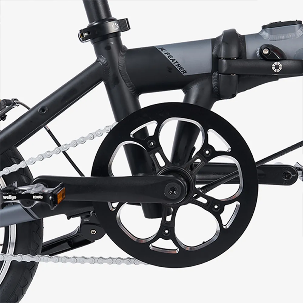 Dahon K-Feather 16" Grey — сверхлёгкий складной электровелосипед весом всего 12 кг с 16-дюймовыми колёсами, предназначенный для компактных городских поездок на расстояния до 40 км на одном заряде.​