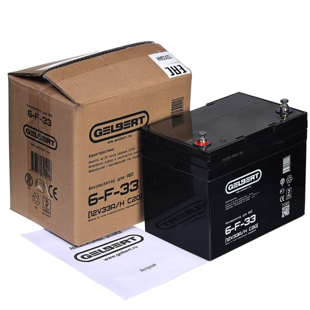 Аккумулятор для ИБП Rutrike Gelbert 6-F-33 (12V33A/H C20)